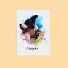 Se trata de una lámina personalizada con la imagen de tu mascota de tamaño A4 con medidas 21×29,7 cm
